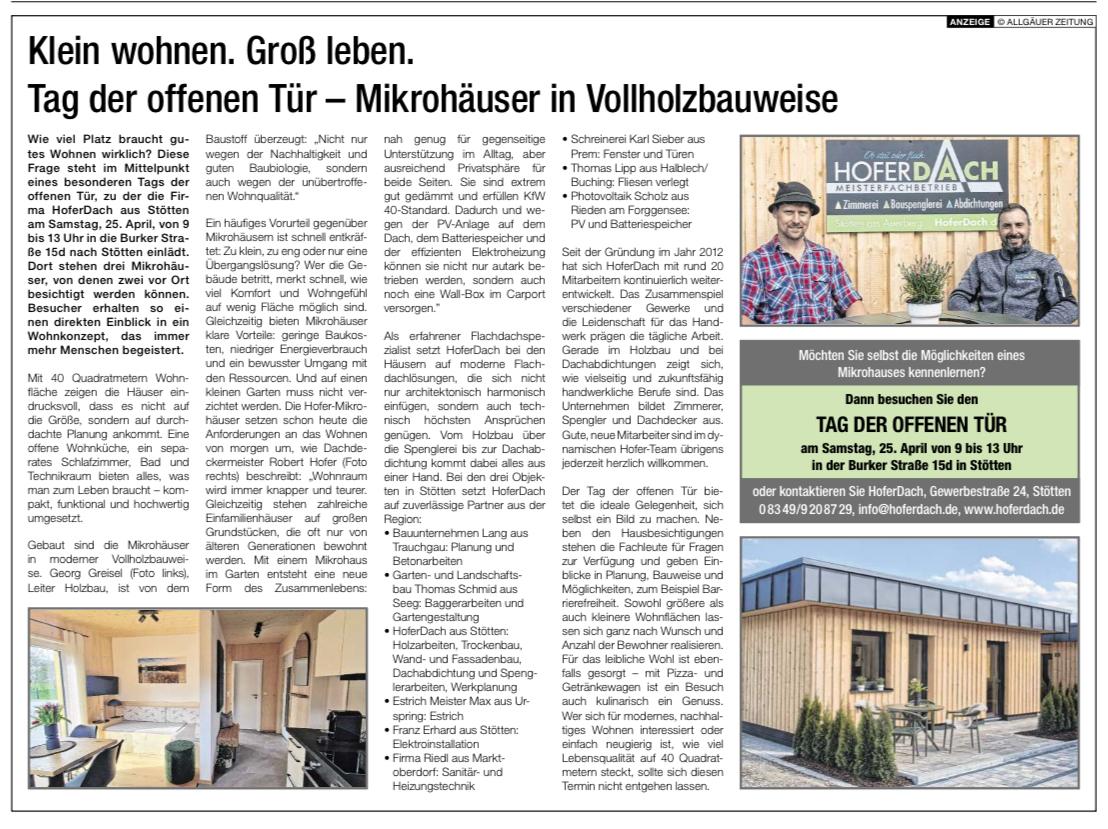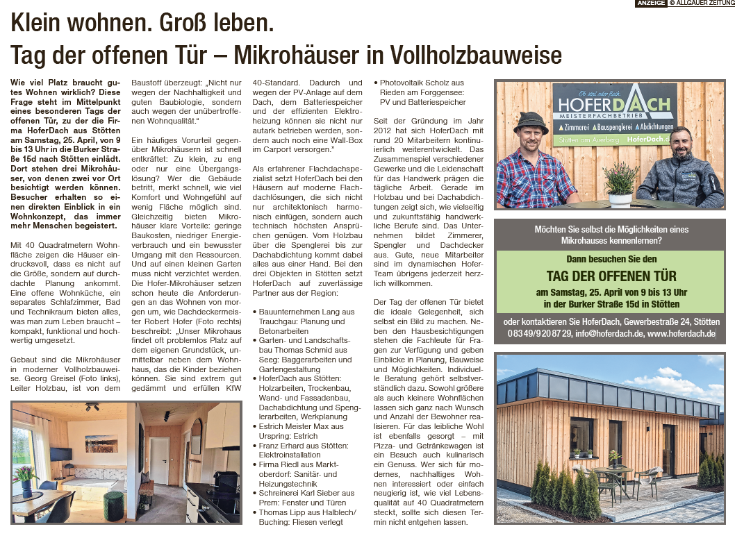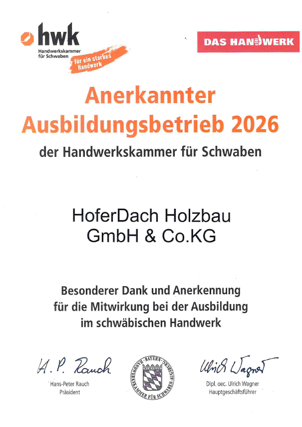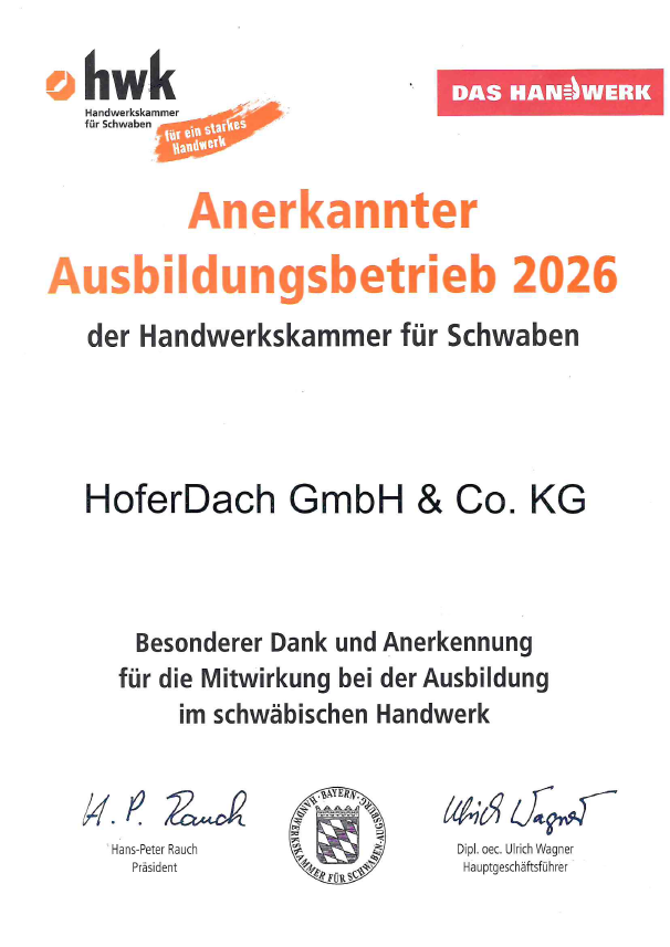 Seit dem Jahr 2014 geben wir auch jungen Schulabgängern die Chance, im Handwerk durchzustarten und bieten Ausbildungsplätze an. Beginne jetzt eine Ausbildung zum Dachdecker, Spengler oder Zimmerer bei HoferDach in Stötten am Auerberg. Wir stärken den Standort Allgäu mit jungen, motivierten Fachkräften!